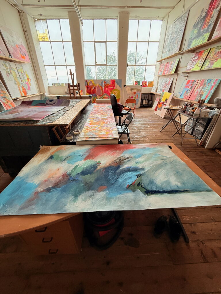I make richly coloured abstract art capturing the energy and feeling of potent emotional experiences. Each new series begins intuitively, triggered by a blend of internal and external stimuli. This may be as simple as a raging storm inducing vigour and a sense of freedom or a prevailing climate of anxiety such as experienced during the pandemic, calling for brash, garish paintings. Interested in the interdependency of opposites: love and loss, freedom and restraint, sorrow and joy… recent work explores this. We often seek happiness without pausing to appreciate that suffering is its natural companion. Embracing these inextricably linked opposites can bring calm. As Kahil Gibran states; “Your joy is your sorrow unmasked”