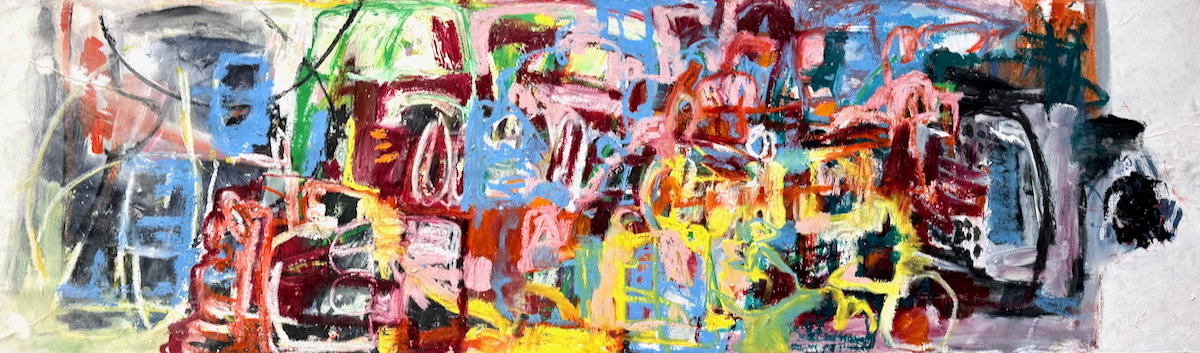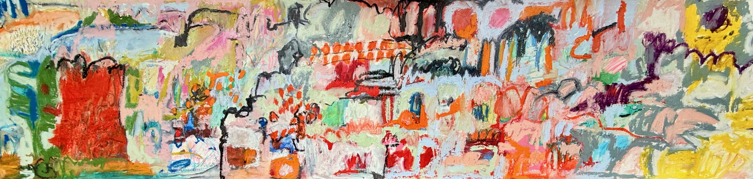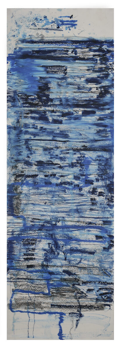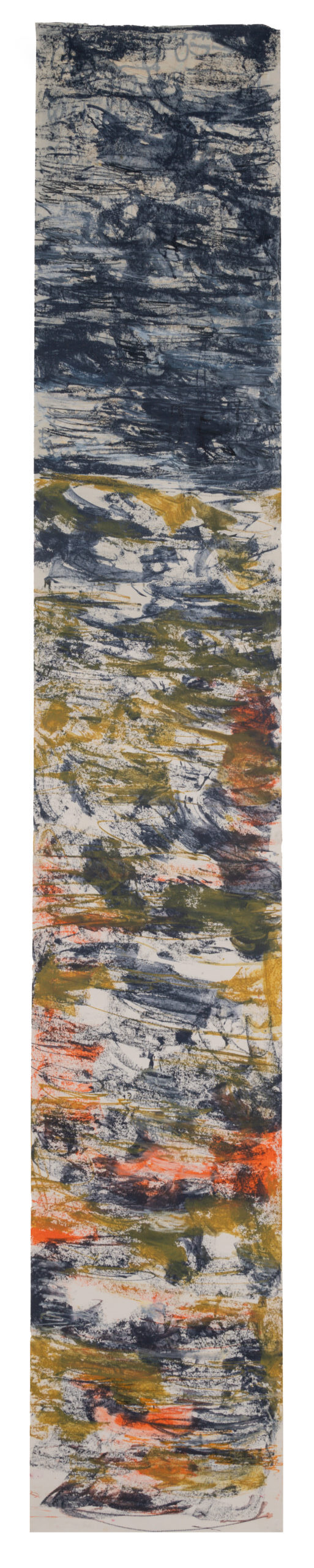 Channeling the mood and rhythm of personally resonant, powerful music into colours and marks, I select materials and colours in the moment. Working in a state of flow, with the music on repeat, the marks develop intuitively, in response to the music’s rhythm.